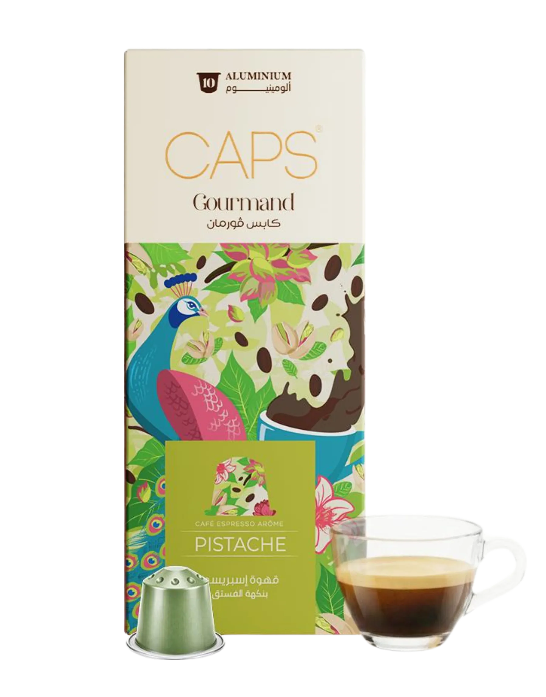 Les CAPS GOURMAND Pistache, chez dz coffee machine Algérie, proposent un café doux et parfumé aux arômes de Pistache.