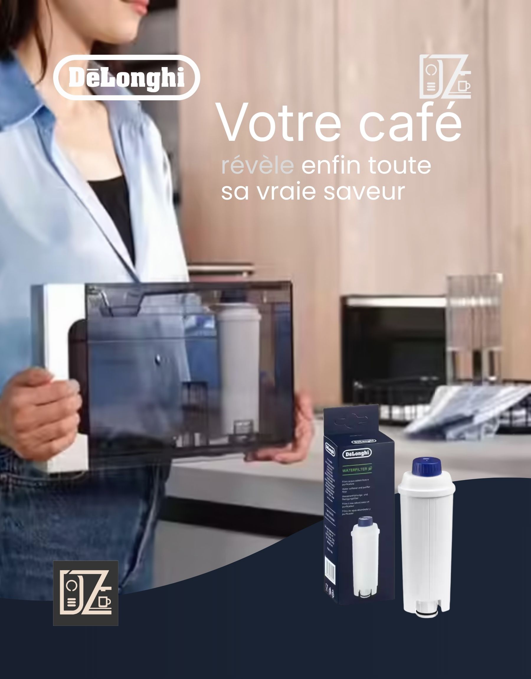 La cartouche filtrante De’Longhi améliore la qualité de l’eau, réduit les dépôts de calcaire et optimise l’arôme du café. Installation rapide et efficacité jusqu’à 2 mois disponible chez dzcoffeemachine.